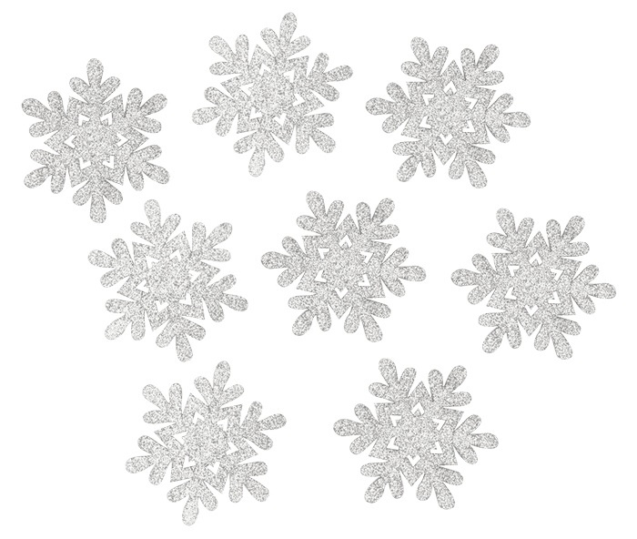 Vločky dřevěné s glitry stříbrné 5 cm 8 kusů
