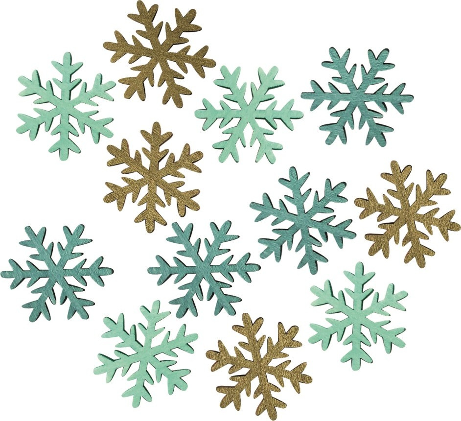 Vločky dřevěné zelené, tyrkysové, hnědé 4 cm 12 kusů