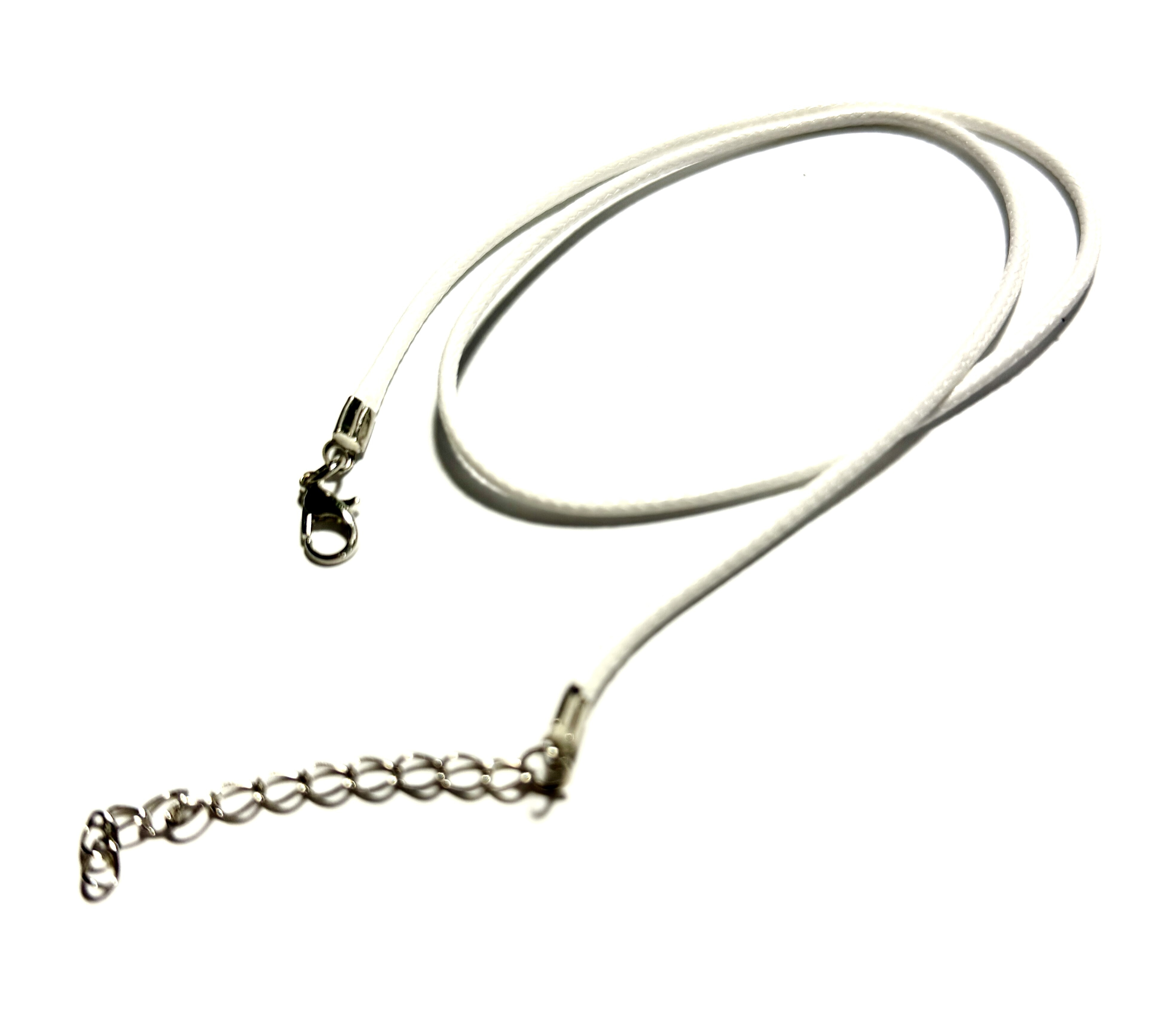 Bavlněná šňůrka, která je povrchově ošetřené voskováním a s hotovým připevněným zapínáním. Stačí pouze navléct přívěsek a vyrazit. Samozřejmostí tohoto hotového výrobku je prodlužovací řetízek. Délka 45 cm + 5 cm adjustační řetízek. Karabinka 7 x 12 mm, šňůra průměr 1,5 mm.