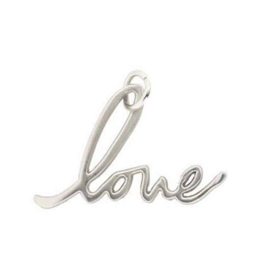 Kovový přívěsek ve tvaru Stříbrného nápisu love (láska) na visačku do auta Charming Scents od Yankee Candle.