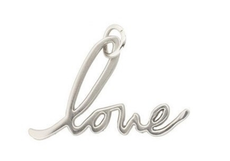 Kovový přívěsek ve tvaru Stříbrného nápisu love (láska) na visačku do auta Charming Scents od Yankee Candle.