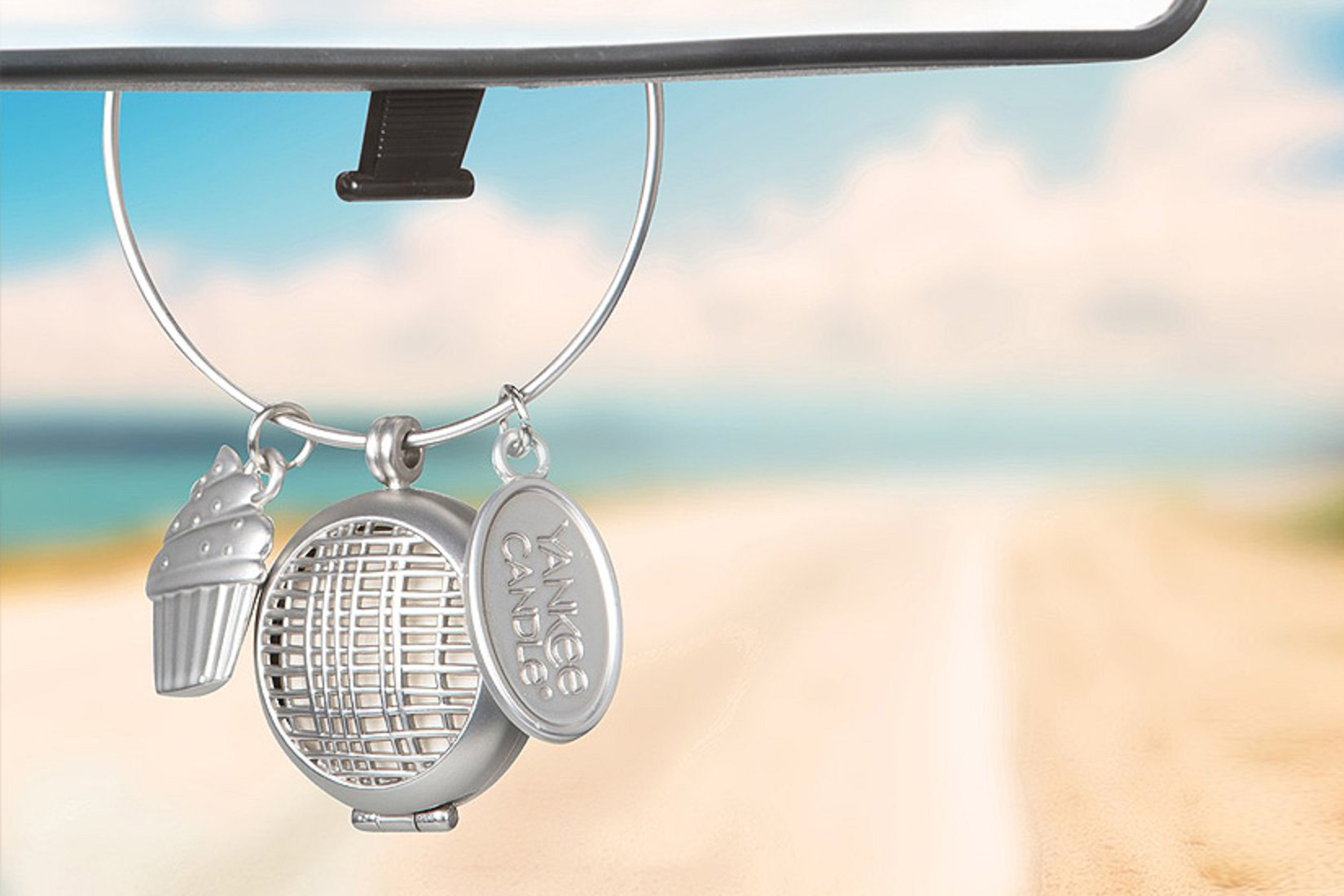Kovový přívěsek ve tvaru Stříbrného dortíku na visačku do auta Charming Scents od Yankee Candle