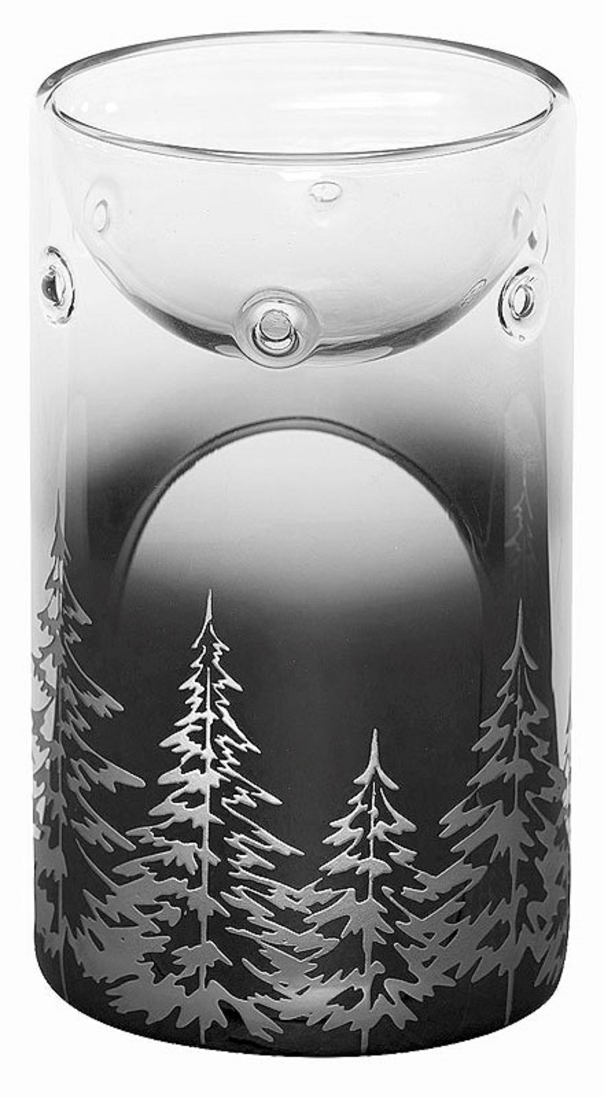Moderní Aromalampa z čirého skla s platinově stříbrným přechodem a motivem zimního lesa slouží k rozpouštění vonných vosků pomocí obyčejné čajové svíčky, která se umístí otvorem ve spodní části. Aromalampa je nepostradatelná pro rozpouštění vonného vosku pomocí obyčejné čajové svíčky. Ta je umístěna ve spodní části. Vrchní část Aromalampy je dostatečně široká, takže se vosk rozpustí na velké ploše a interiér je okamžitě a sytě provoněn. Ulomte z vosků různých vůní kousek a rozpusťte je společně - vytvoříte si vlastní vůni na míru!