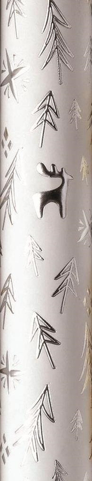 Designově ojedinělý vánoční papír, který odpovídá modernímu trendu balení dárků. Velmi kvalitní, mimořádně pevný a odolný papír. Podklad v bílé barvě, ražba stříbrnou metalizovanou fólií, která vytváří plastický povrch s kovově lesklým efektem. Celá kompozice působí výjimečně a jako malé umělecké dílo.